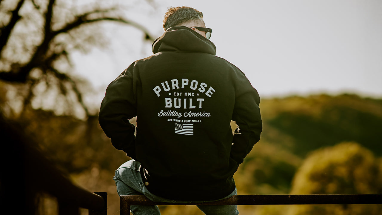 ARIAT WORKRebar Graphic Hoodie - Colony Blue Heather/Firebrick Red